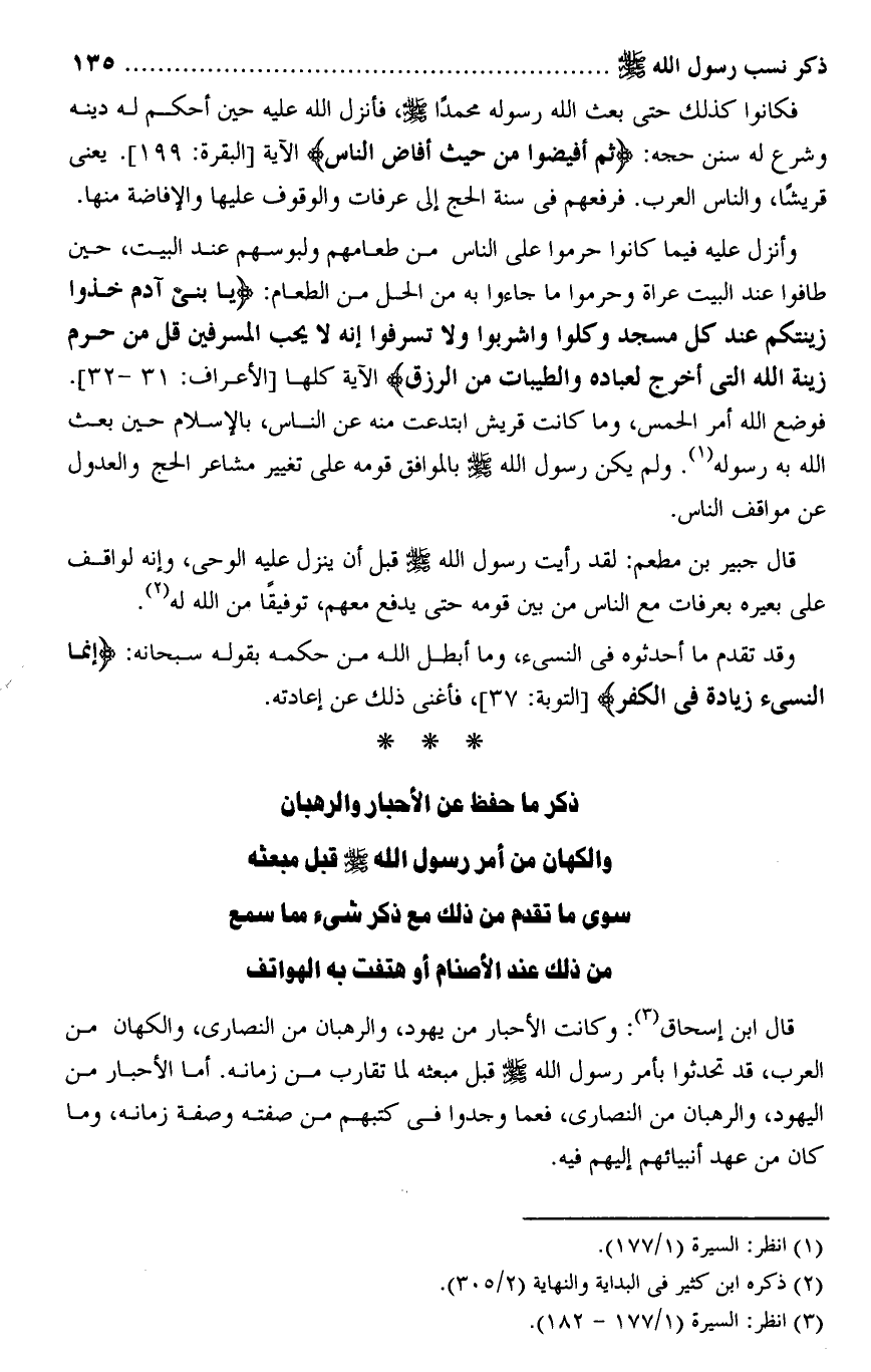 فكانوا كذلك حتى بعث الله رسوله محمدا صلى الله عليه وسلم، فأنزل الله عليه حين أحكم له دينه وشرع له سنن حجه: ثُمَّ أَفِيضُوا مِنْ حَيْثُ أَفاضَ النَّاسُ الآية [البقرة: 199] . يعنى قريشا، والناس العرب. فرفعهم فى سنة الحج إلى عرفات والوقوف عليها والإفاضة منها.