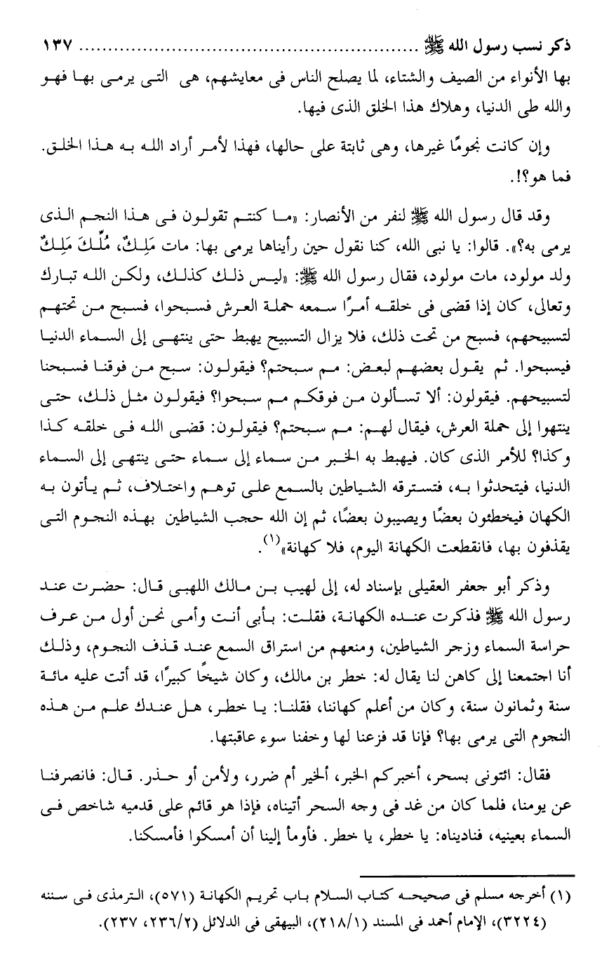 (1) أخرجه مسلم فى صحيحه كتاب السلام باب تحريم الكهانة (571) ، الترمذى فى سننه (3224) ، الإمام أحمد فى المسند (1/ 218) ، البيهقى فى الدلائل (2/ 236، 237) .