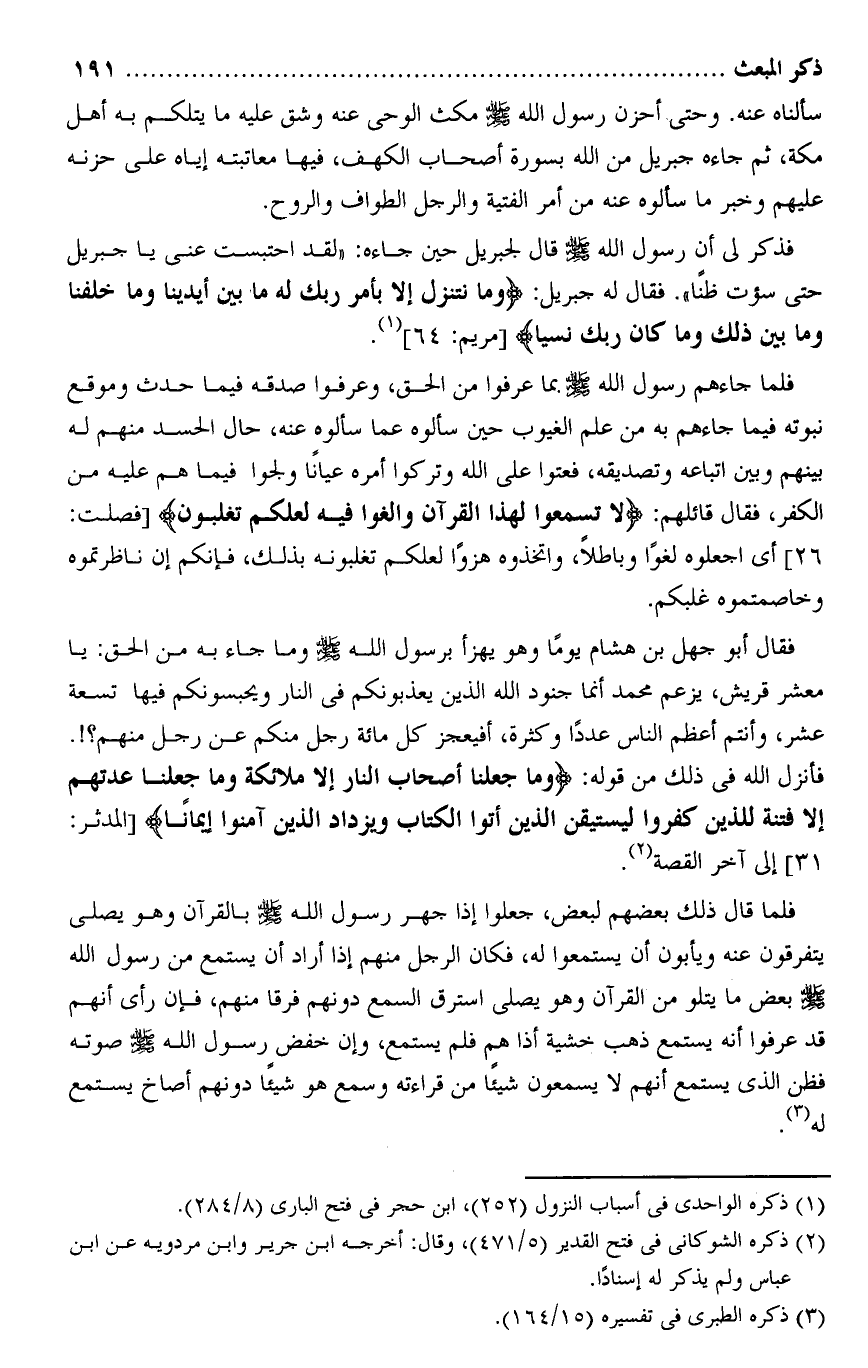 فذكر لى أن رسول الله صلى الله عليه وسلم قال لجبريل حين جاءه: «لقد احتبست عنى يا جبريل حتى سؤت ظنا» . فقال له جبريل: وَما نَتَنَزَّلُ إِلَّا بِأَمْرِ رَبِّكَ لَهُ ما بَيْنَ أَيْدِينا وَما خَلْفَنا وَما بَيْنَ ذلِكَ وَما كانَ رَبُّكَ نَسِيًّا [مريم: 64] «1» .