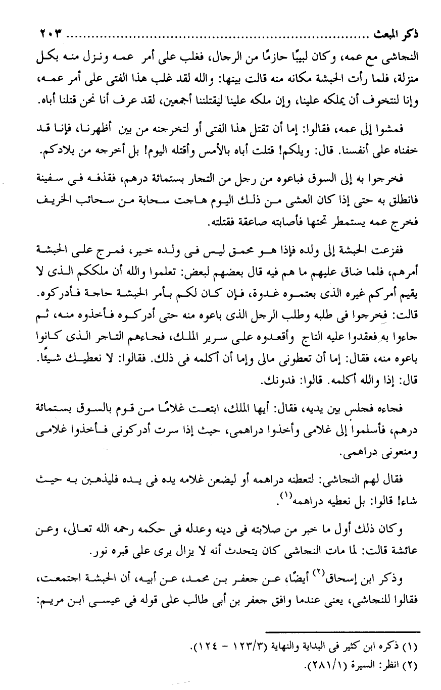 فقال لهم النجاشى: لتعطنه دراهمه أو ليضعن غلامه يده فى يده فليذهبن به حيث شاء! قالوا: بل نعطيه دراهمه «1» .