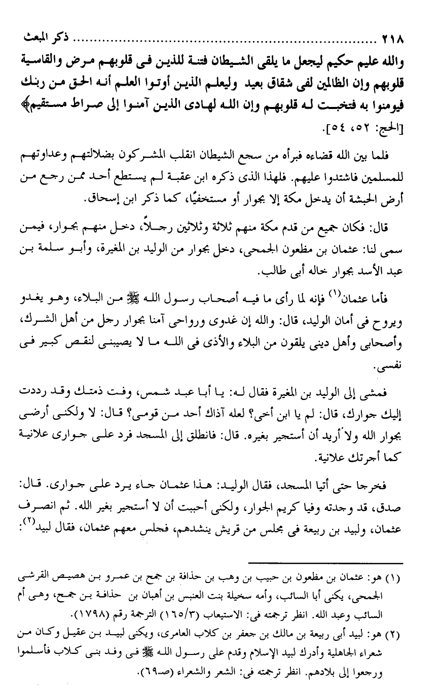 صدق، قد وجدته وفيا كريم الجوار، ولكنى أحببت أن لا أستجير بغير الله. ثم انصرف عثمان، ولبيد بن ربيعة فى مجلس من قريش ينشدهم، فجلس معهم عثمان، فقال لبيد «2» :