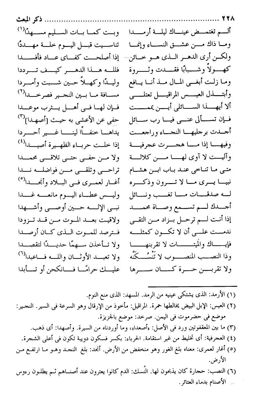 وذا النصب المنصوب لا تنسكنّه ... ولا تعبد الأوثان والله فاعبدا «6»