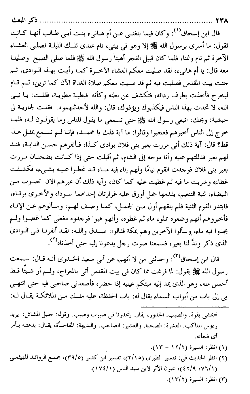 (2) انظر الحديث فى: تفسير الطبرى (15/ 2) ، تفسير ابن كثير (5/ 39) ، مجمع الزوائد للهيثمى (1/ 76، 9/ 42) ، عيون الأثر لابن سيد الناس (1/ 174) .