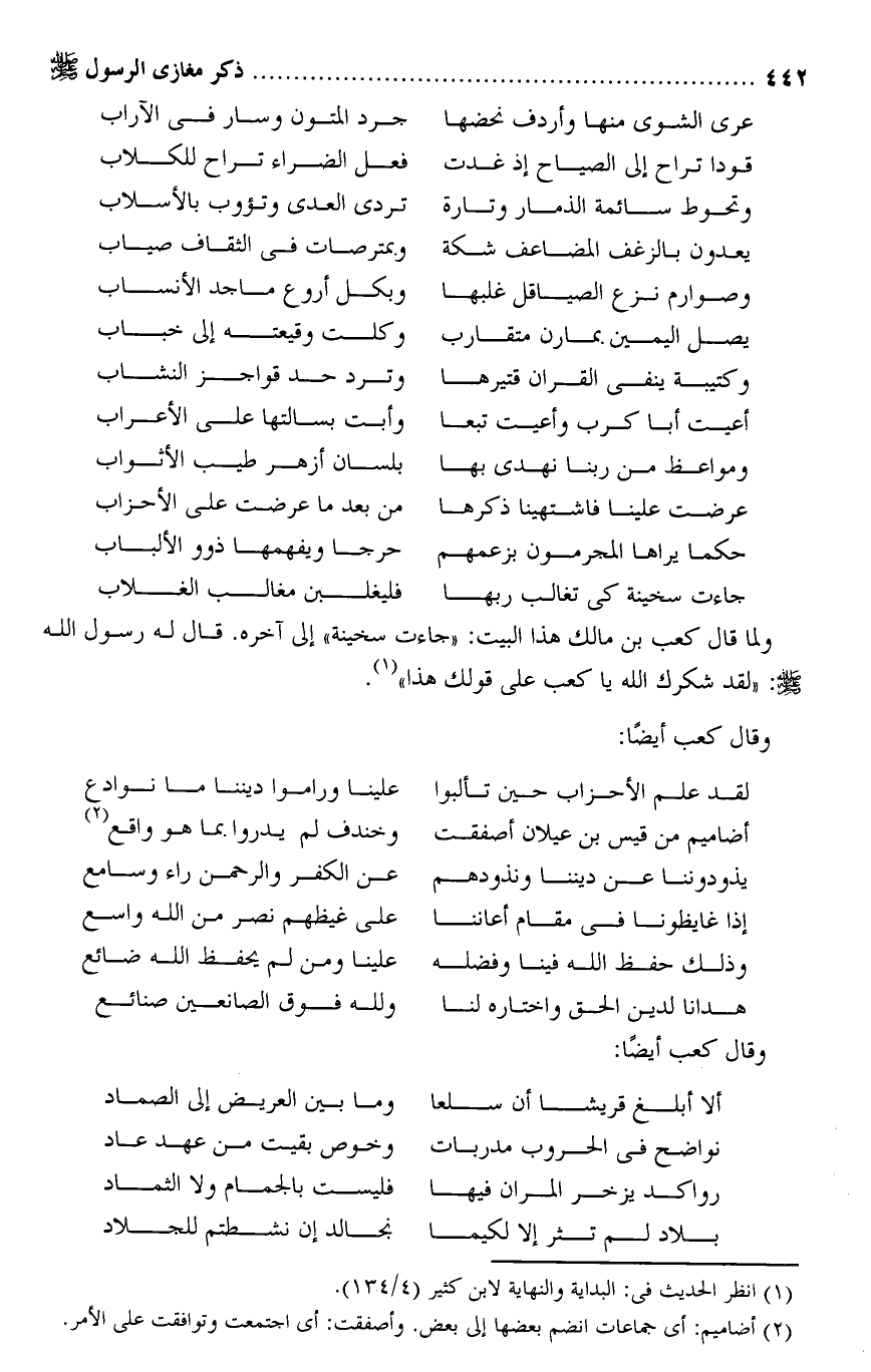 ولما قال كعب بن مالك هذا البيت: «جاءت سخينة» إلى آخره. قال له رسول الله صلى الله عليه وسلم: «لقد شكرك الله يا كعب على قولك هذا» «1» .