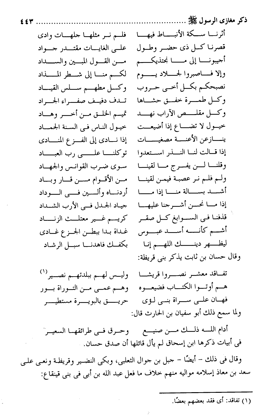فى أبيات ذكرها ابن إسحاق لم يأل قائلها أن صدق حسان.