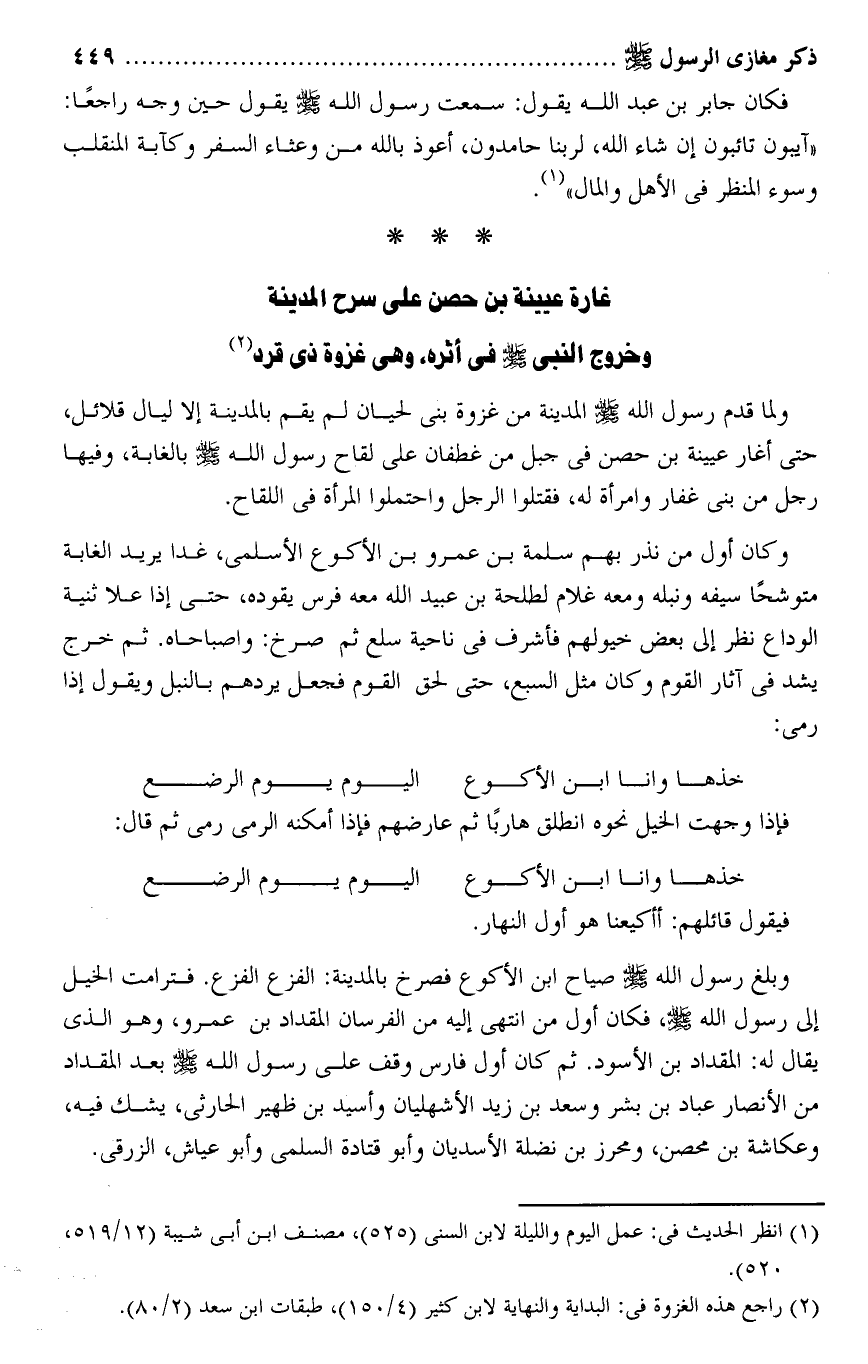 غارة عيينة بن حصن على سرح المدينة وخروج النبى صلى الله عليه وسلم فى أثره، وهى غزوة ذى قرد «2»