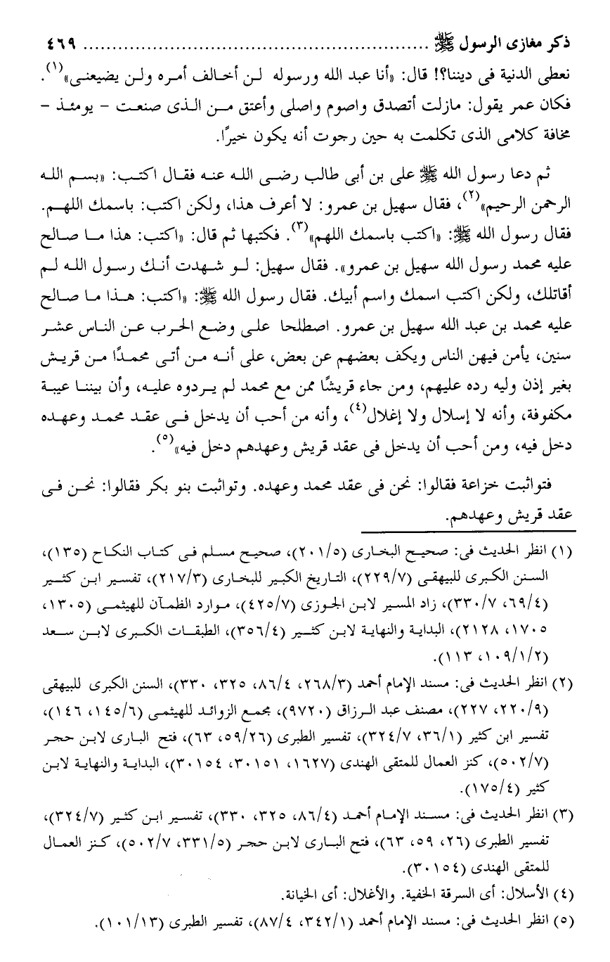 ثم دعا رسول الله صلى الله عليه وسلم على بن أبى طالب رضى الله عنه فقال اكتب: «بسم الله الرحمن الرحيم» «2» ، فقال سهيل بن عمرو: لا أعرف هذا، ولكن اكتب: باسمك اللهم.