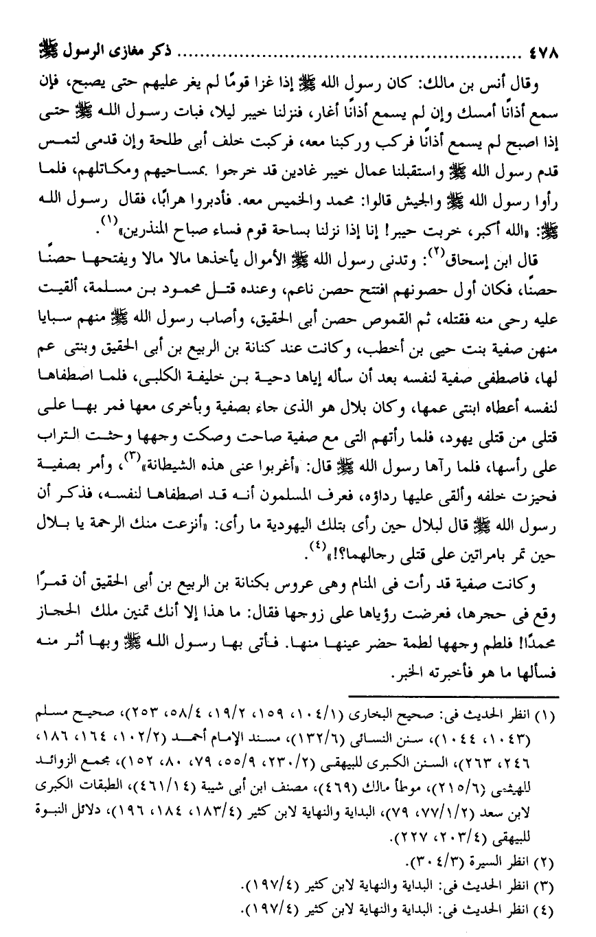 (1) انظر الحديث فى: صحيح البخارى (1/ 104، 159، 2/ 19، 4/ 58، 253) ، صحيح مسلم (1043، 1044) ، سنن النسائى (6/ 132) ، مسند الإمام أحمد (2/ 102، 164، 186، 246، 263) ، السنن الكبرى للبيهقى (2/ 230، 9/ 55، 79، 80، 152) ، مجمع الزوائد للهيثمى (6/ 215) ، موطأ مالك (469) ، مصنف ابن أبى شيبة (14/ 461) ، الطبقات الكبرى لابن سعد (2/ 1/ 77، 79) ، البداية والنهاية لابن كثير (4/ 183، 184، 196) ، دلائل النبوة للبيهقى (4/ 203، 227) .