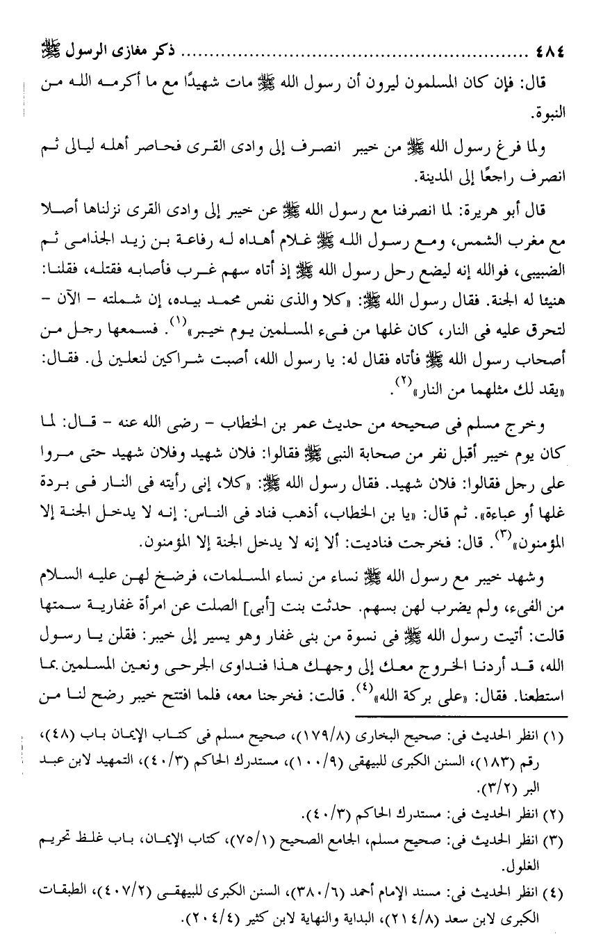 (4) انظر الحديث فى: مسند الإمام أحمد (6/ 380) ، السنن الكبرى للبيهقى (2/ 407) ، الطبقات الكبرى لابن سعد (8/ 214) ، البداية والنهاية لابن كثير (4/ 204) .