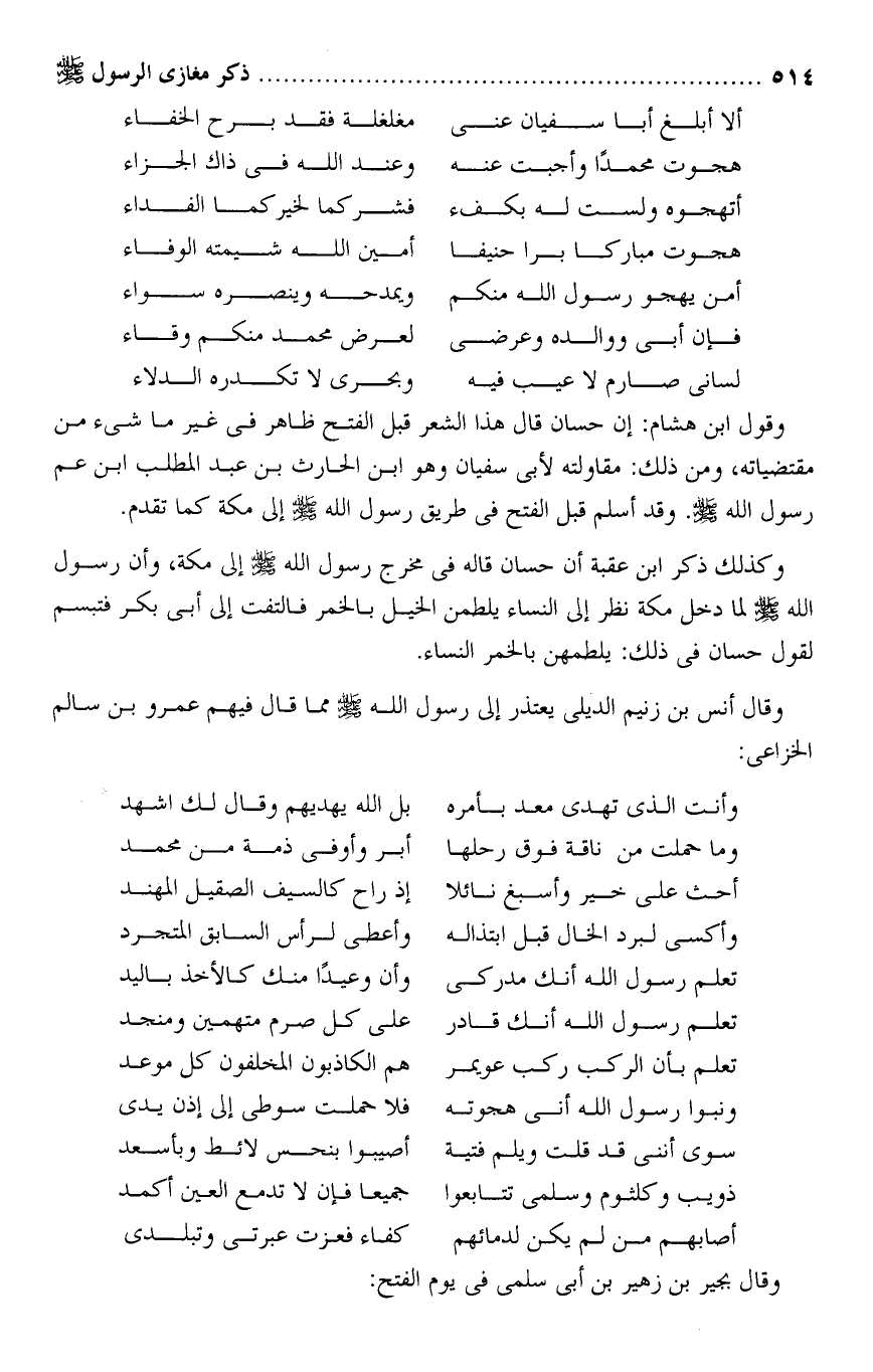 وقول ابن هشام: إن حسان قال هذا الشعر قبل الفتح ظاهر فى غير ما شىء من مقتضياته، ومن ذلك: مقاولته لأبى سفيان وهو ابن الحارث بن عبد المطلب ابن عم رسول الله صلى الله عليه وسلم. وقد أسلم قبل الفتح فى طريق رسول الله صلى الله عليه وسلم إلى مكة كما تقدم.