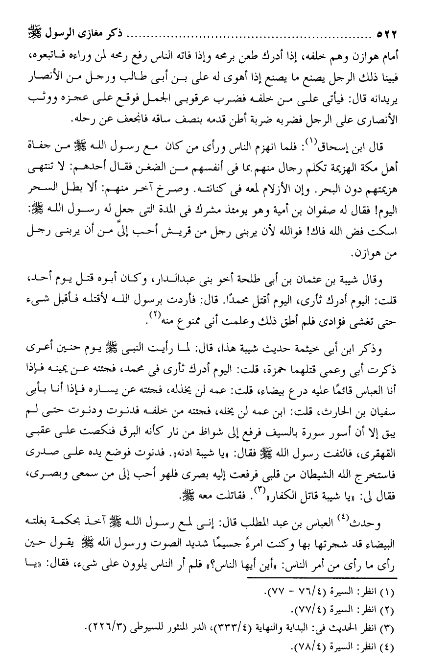وحدث «4» العباس بن عبد المطلب قال: إنى لمع رسول الله صلى الله عليه وسلم آخذ بحكمة بغلته البيضاء قد شجرتها بها وكنت امرء جسيما شديد الصوت ورسول الله صلى الله عليه وسلم يقول حين رأى ما رأى من أمر الناس: «أين أيها الناس؟» فلم أر الناس يلوون على شىء، فقال: «يا