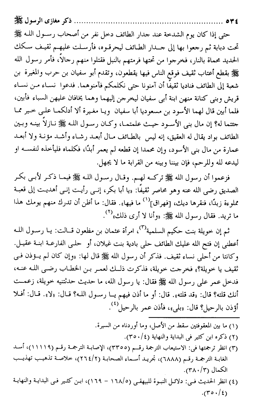 وكانتا من أحلى نساء ثقيف. فذكر أن رسول الله صلى الله عليه وسلم قال لها: «وإن كان لم يؤذن فى ثقيف يا خويلة؟» فخرجت خويلة، فذكرت ذلك لعمر بن الخطاب رضى الله عنه، فدخل عمر على رسول الله صلى الله عليه وسلم فقال: يا رسول الله، ما حديث حدثتنيه خويلة، زعمت أنك قلته؟ قال: «قد قلته» . قال: أو ما أذن فيهم يا رسول الله؟ قال: «لا» . قال: أفلا أؤذن بالرحيل؟ قال: «بلى» ، فأذن عمر بالرحيل «4» .