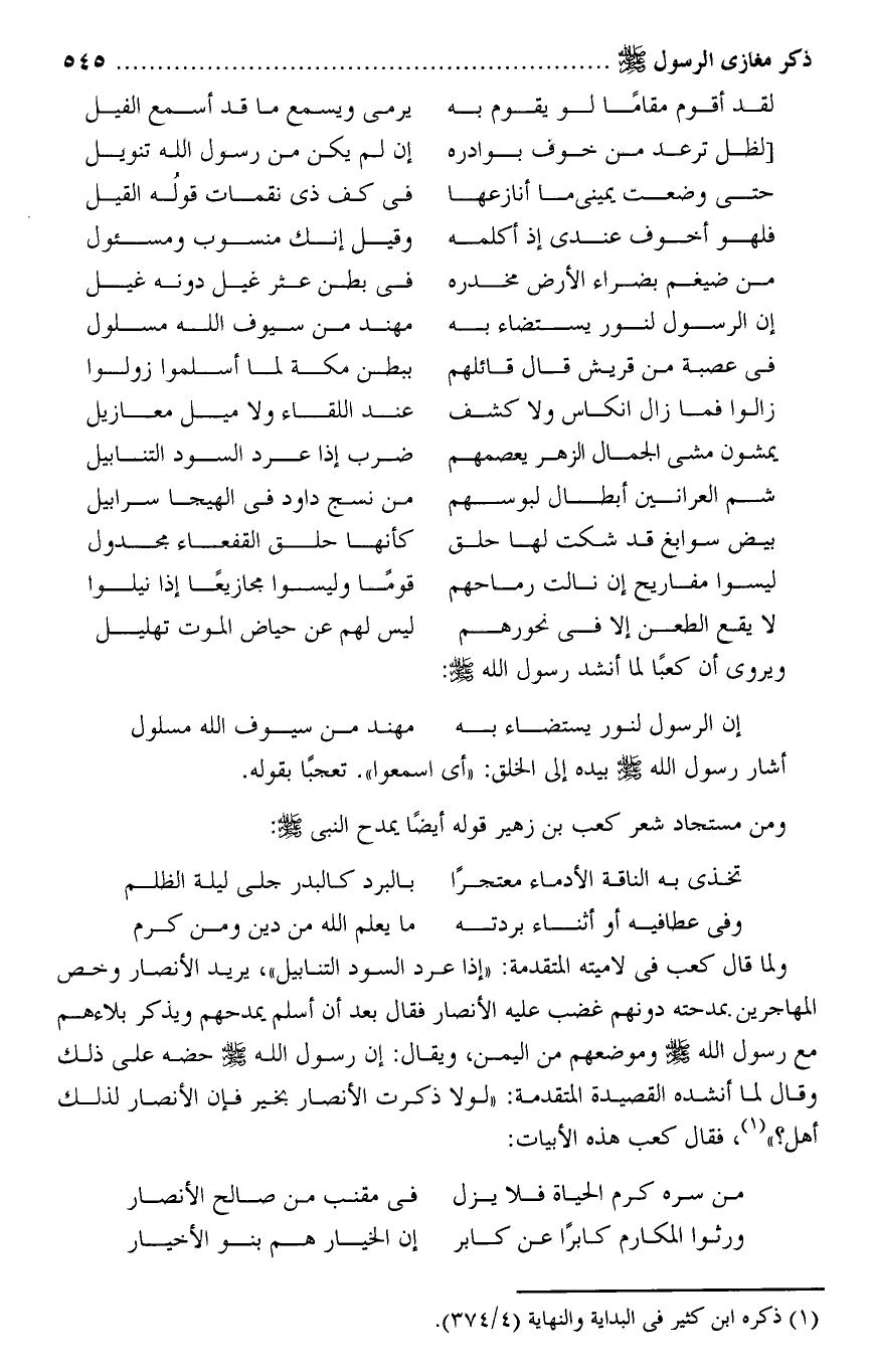 ولما قال كعب فى لاميته المتقدمة: «إذا عرد السود التنابيل» ، يريد الأنصار وخص المهاجرين بمدحته دونهم غضب عليه الأنصار فقال بعد أن أسلم يمدحهم ويذكر بلاءهم مع رسول الله صلى الله عليه وسلم وموضعهم من اليمن، ويقال: إن رسول الله صلى الله عليه وسلم حضه على ذلك وقال لما أنشده القصيدة المتقدمة: «لولا ذكرت الأنصار بخير فإن الأنصار لذلك أهل؟» «1» ، فقال كعب هذه الأبيات: