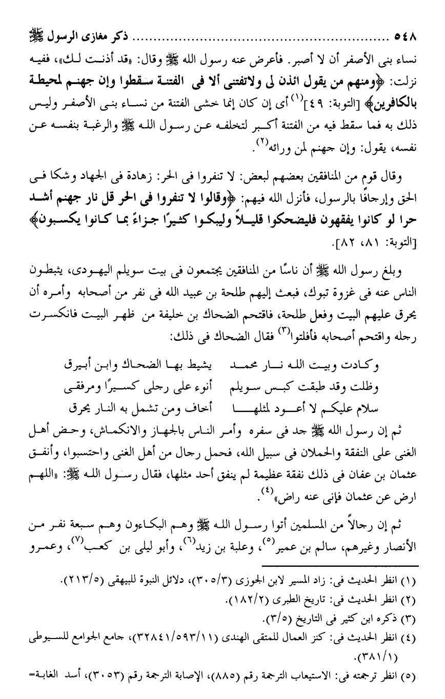 وقال قوم من المنافقين بعضهم لبعض: لا تنفروا فى الحر: زهادة فى الجهاد وشكا فى الحق وإرجافا بالرسول، فأنزل الله فيهم: وَقالُوا لا تَنْفِرُوا فِي الْحَرِّ قُلْ نارُ جَهَنَّمَ أَشَدُّ حَرًّا لَوْ كانُوا يَفْقَهُونَ فَلْيَضْحَكُوا قَلِيلًا وَلْيَبْكُوا كَثِيراً جَزاءً بِما كانُوا يَكْسِبُونَ [التوبة: 81، 82] .