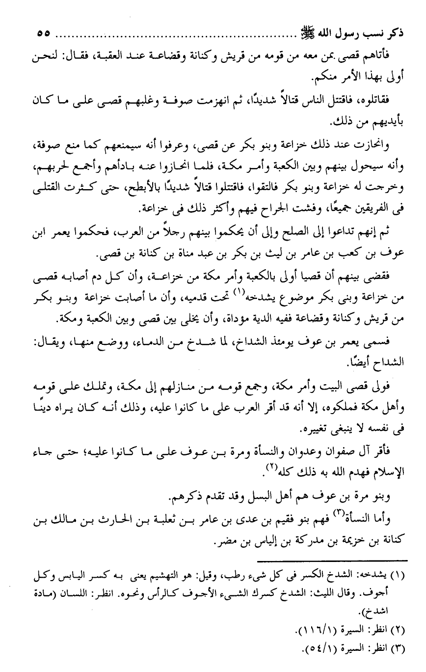 فأقر آل صفوان وعدوان والنسأة ومرة بن عوف على ما كانوا عليه؛ حتى جاء الإسلام فهدم الله به ذلك كله «2» .