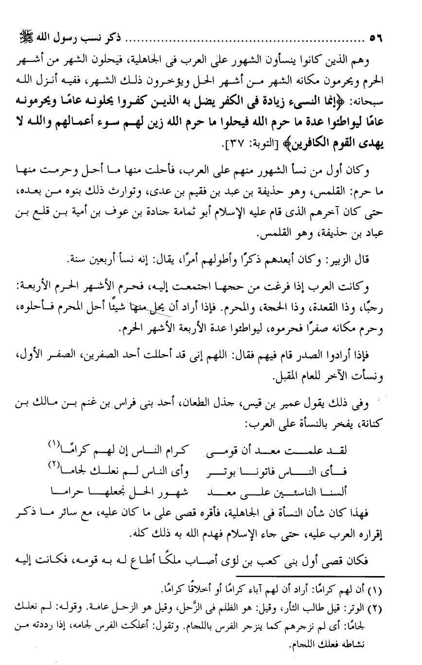 فهذا كان شأن النسأة فى الجاهلية، فأقره قصى على ما كان عليه، مع سائر ما ذكر إقراره العرب عليه، حتى جاء الإسلام فهدم الله به ذلك كله.
