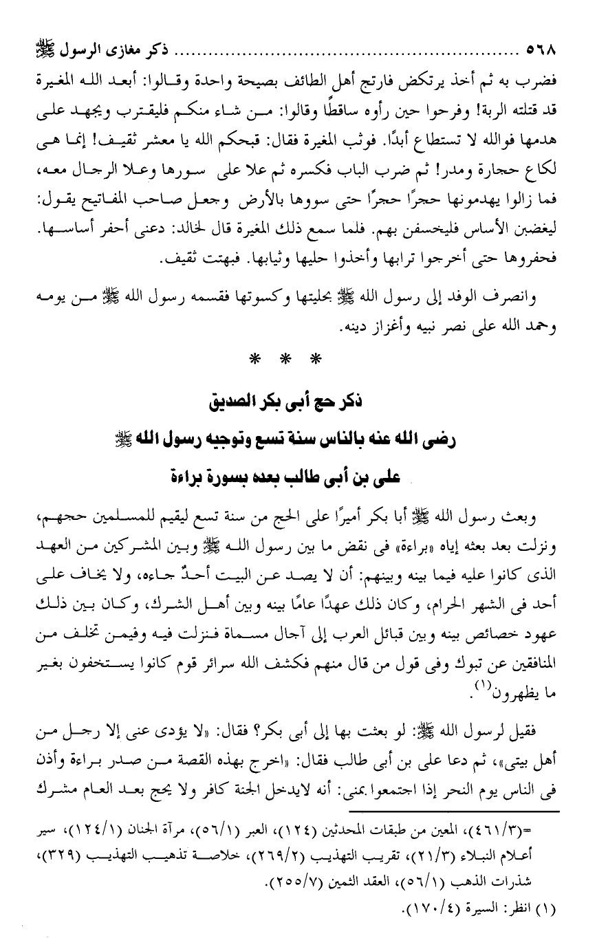 ذكر حج أبى بكر الصديق رضى الله عنه بالناس سنة تسع وتوجيه رسول الله صلى الله عليه وسلم على بن أبى طالب بعده بسورة براءة