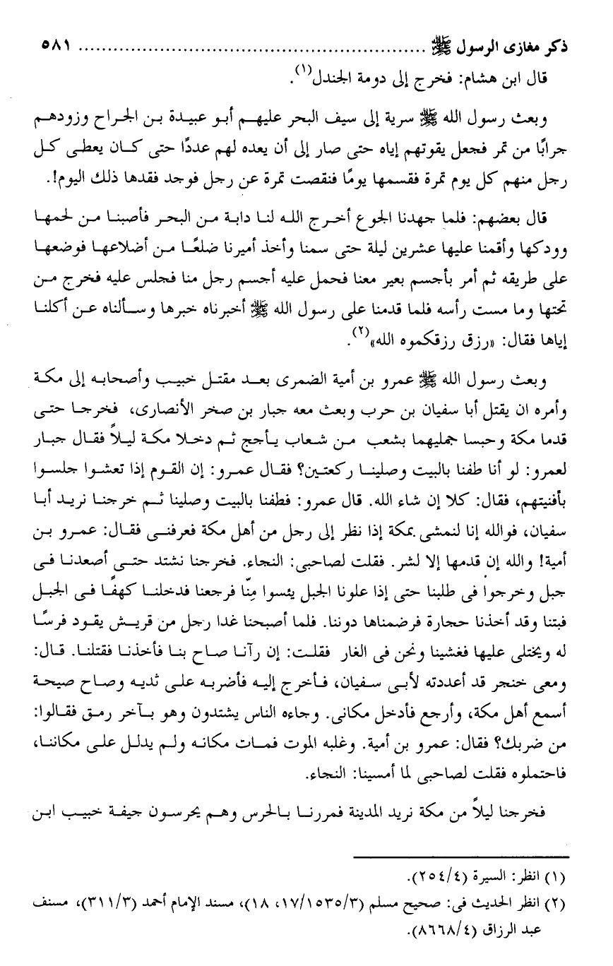 من ضربك؟ فقال: عمرو بن أمية. وغلبه الموت فمات مكانه ولم يدلل على مكاننا، فاحتملوه فقلت لصاحبى لما أمسينا: النجاء.