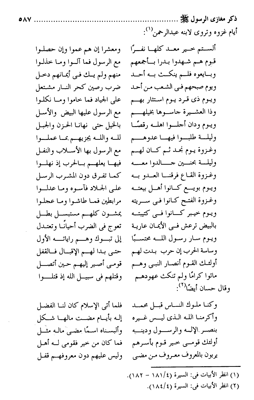 (1) انظر الأبيات فى: السيرة (4/ 181- 182) .