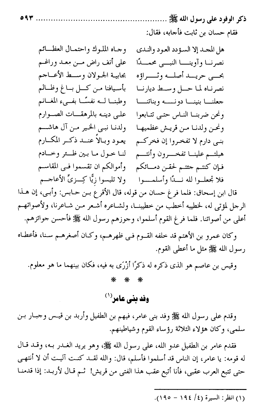 وقدم على رسول الله صلى الله عليه وسلم وفد بنى عامر، فيهم بن الطفيل وأربد بن قيس وجبار بن سلمى، وكان هؤلاء الثلاثة رؤساء القوم وشياطينهم.