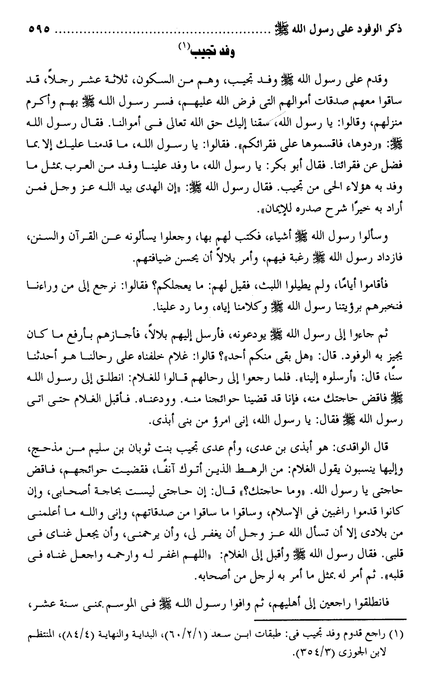 (1) راجع قدوم وفد تجيب فى: طبقات ابن سعد (1/ 2/ 60) ، البداية والنهاية (4/ 84) ، المنتظم لابن الجوزى (3/ 354) .