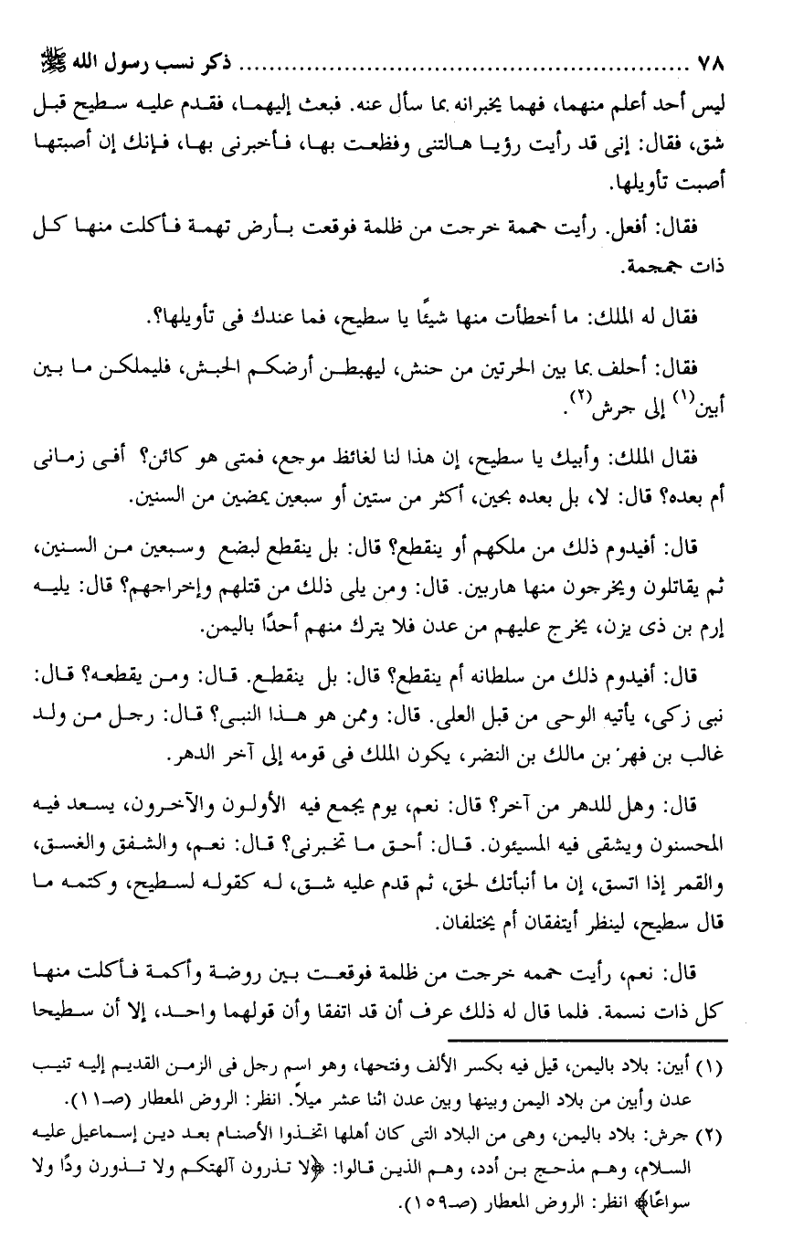 قال: نعم، رأيت حممه خرجت من ظلمة فوقعت بين روضة وأكمة فأكلت منها كل ذات نسمة. فلما قال له ذلك عرف أن قد اتفقا وأن قولهما واحد، إلا أن سطيحا