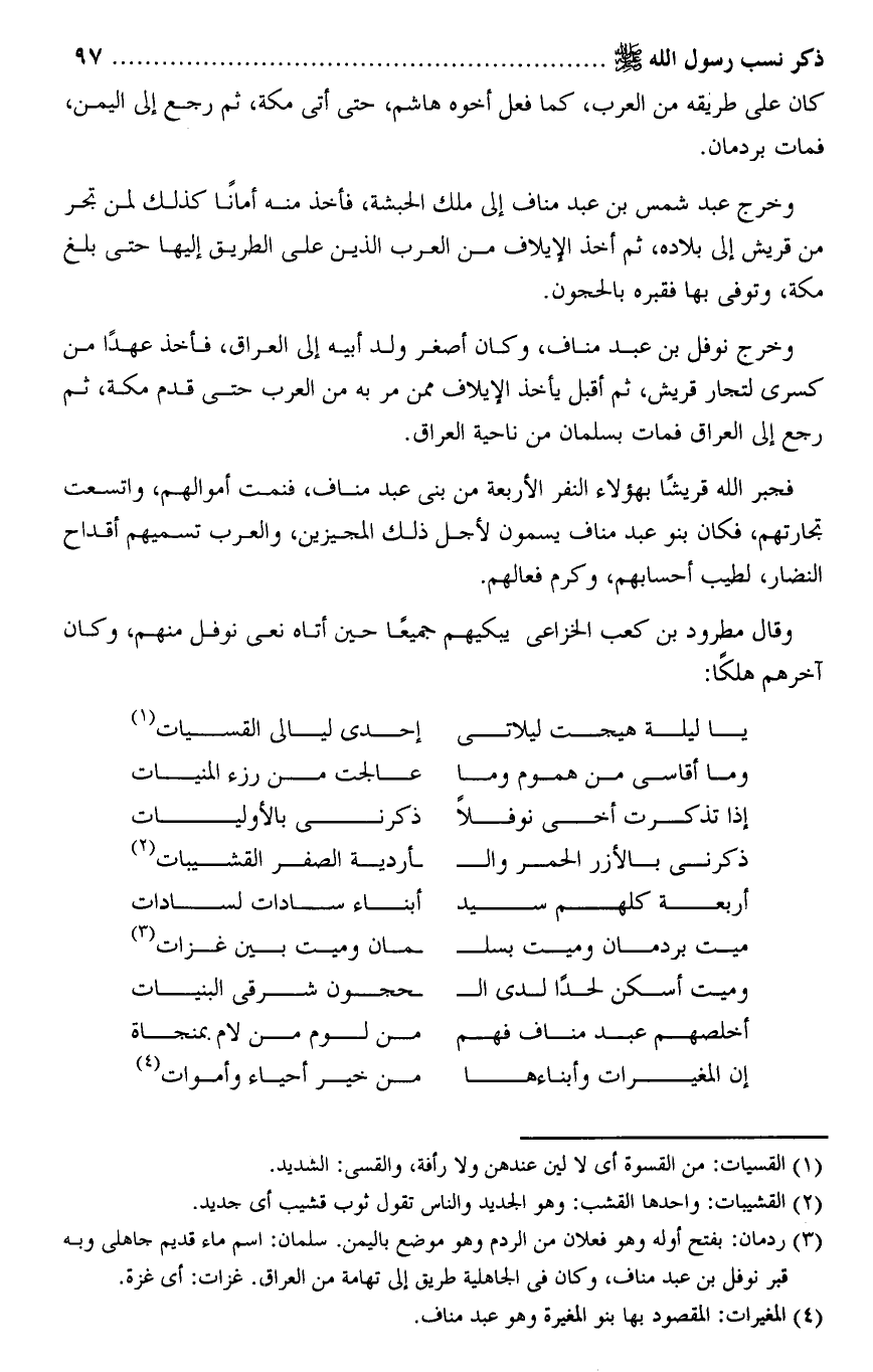 (4) المغيرات: المقصود بها بنو المغيرة وهو عبد مناف.