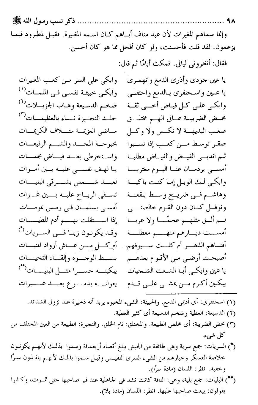 يا عين جودى وأذرى الدمع وانهمرى ... وابكى على السر من كعب المغيرات