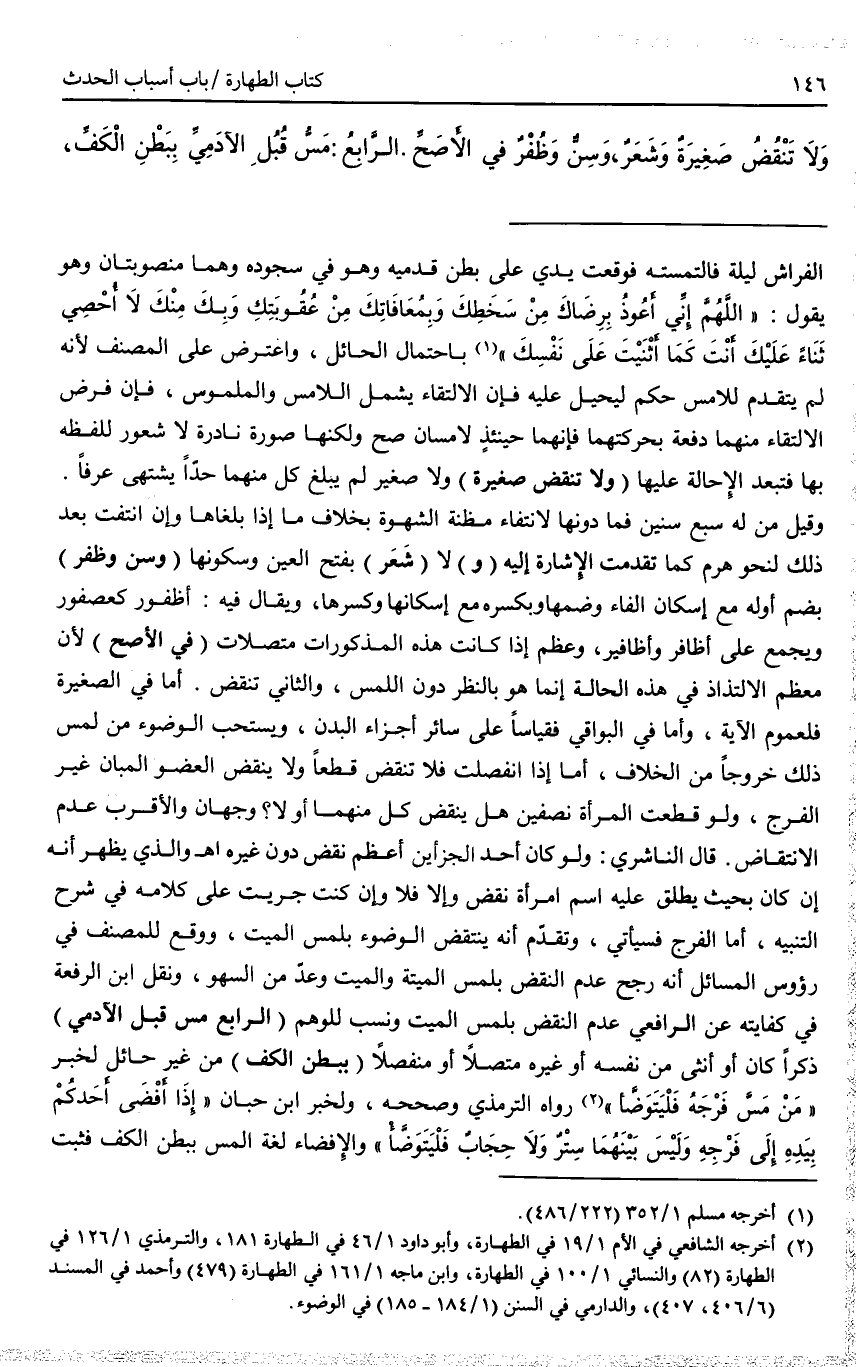 الرَّابِعُ: مَسُّ قُبُلِ الْآدَمِيِّ بِبَطْنِ الْكَفِّ،