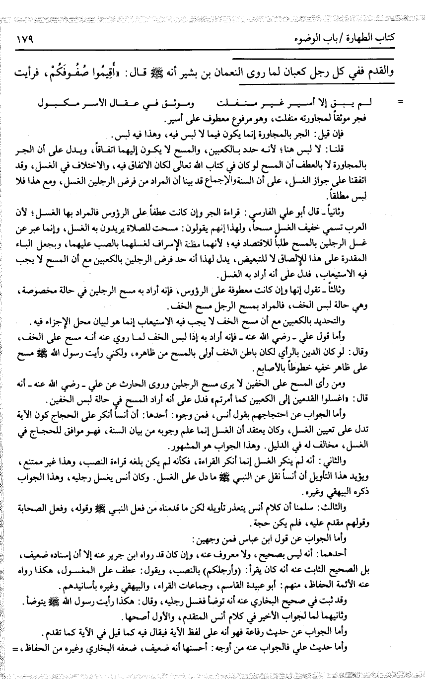 ـــــــــــــــــــــــــــــQوَالْقَدَمِ فَفِي كُلِّ رِجْلٍ كَعْبَانِ لِمَا رَوَى النُّعْمَانُ بْنُ بَشِيرٍ