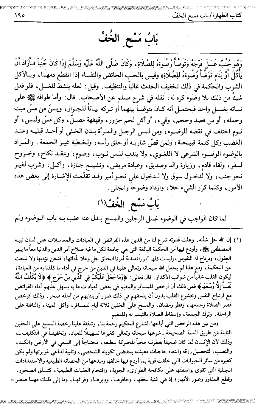 (بَابُ مَسْحِ الْخُفِّ) (1) لَمَّا كَانَ الْوَاجِبُ فِي الْوُضُوءِ غَسْلَ الرِّجْلَيْنِ، وَالْمَسْحُ بَدَلٌ عَنْهُ عَقَّبَ بِهِ بَابَ الْوُضُوءِ وَلَمْ