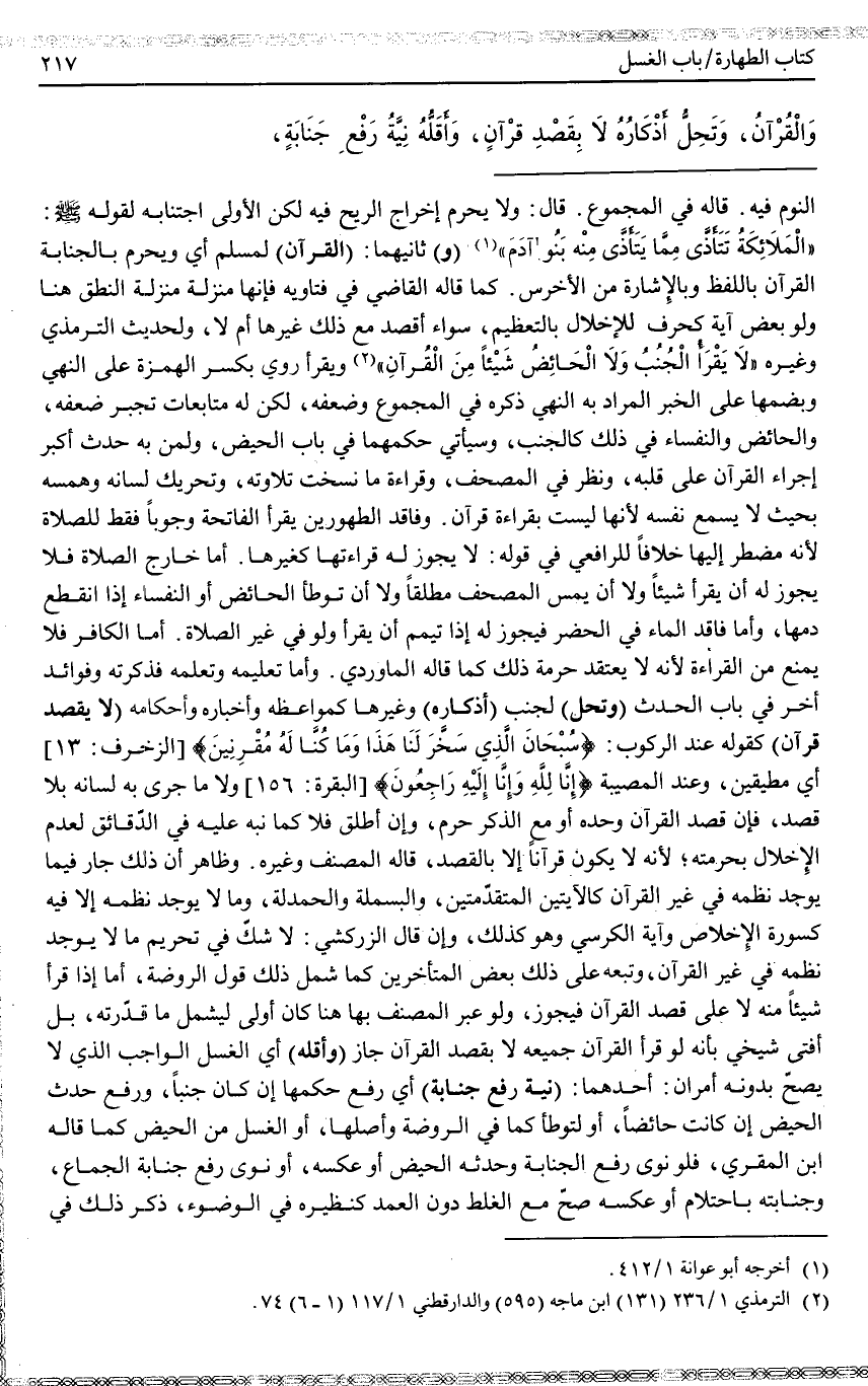 وَالْقُرْآنُ، وَتَحِلُّ أَذْكَارُهُ لَا بِقَصْدِ قُرْآنٍ.