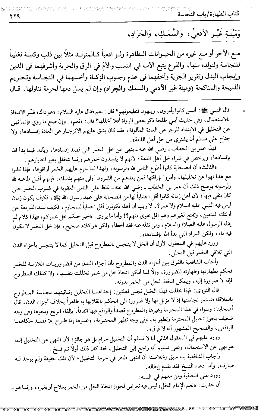 ـــــــــــــــــــــــــــــQمَعَ الْآخَرِ أَوْ مَعَ غَيْرِهِ مِنْ الْحَيَوَانَاتِ الطَّاهِرَةِ وَلَوْ آدَمِيًّا كَالْمُتَوَلِّدِ مَثَلًا بَيْنَ ذِئْبٍ وَكَلْبَةٍ تَغْلِيبًا لِلنَّجَاسَةِ وَلِتَوَلُّدِهِ مِنْهَا، وَالْفَرْعُ يَتْبَعُ الْأَبَ فِي النَّسَبِ، وَالْأُمَّ فِي الرِّقِّ وَالْحُرِّيَّةِ، وَأَشْرَفَهُمَا فِي الدِّينِ وَإِيجَابِ الْبَدَلِ وَتَقْرِيرِ الْجِزْيَةِ، وَأَخَفَّهُمَا فِي عَدَمِ وُجُوبِ الزَّكَاةِ وَأَخَسَّهُمَا فِي النَّجَاسَةِ وَتَحْرِيمِ الذَّبِيحَةِ وَالْمُنَاكَحَةِ (وَمَيْتَةِ غَيْرِ الْآدَمِيِّ وَالسَّمَكِ وَالْجَرَادِ) وَإِنْ لَمْ يَسِلْ دَمُهَا لِحُرْمَةِ تَنَاوُلِهَا.