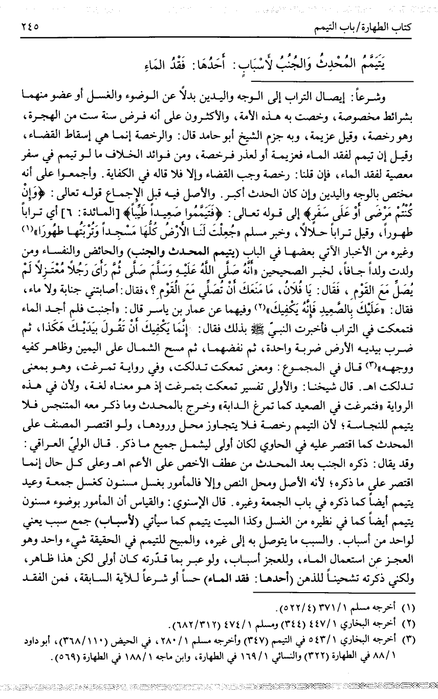 يَتَيَمَّمُ الْمُحْدِثُ وَالْجُنُبُ لِأَسْبَابٍ: أَحَدُهَا: فَقْدُ الْمَاءِ