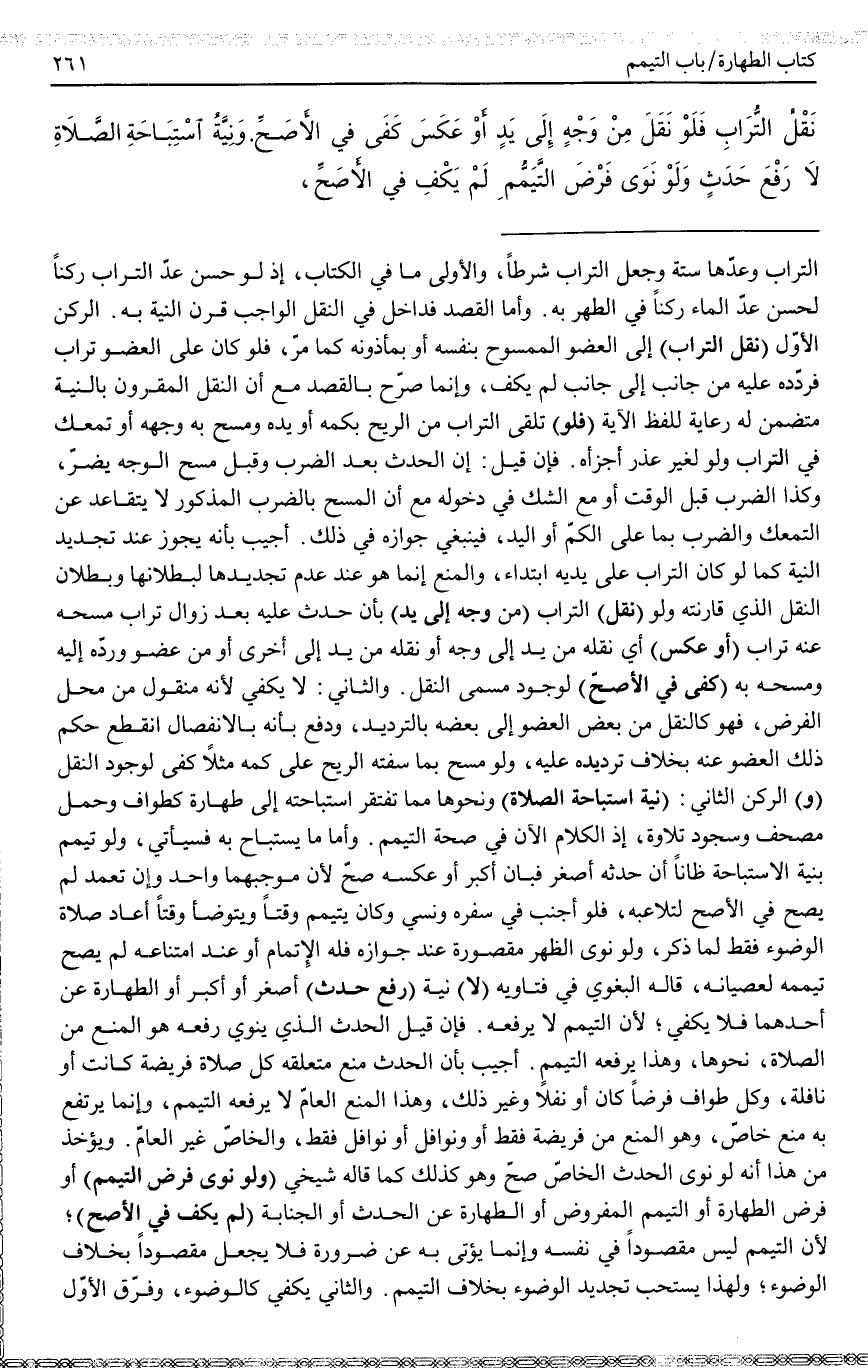 أُجِيبَ بِأَنَّ الْحَدَثَ مَنَعَ مُتَعَلِّقُهُ كُلَّ صَلَاةِ فَرِيضَةً كَانَتْ أَوْ نَافِلَةً، وَكُلَّ طَوَافٍ فَرْضًا كَانَ أَوْ نَفْلًا وَغَيْرَ ذَلِكَ، وَهَذَا الْمَنْعُ الْعَامُّ لَا يَرْفَعُهُ التَّيَمُّمُ، وَإِنَّمَا يَرْتَفِعُ بِهِ مَنْعٌ خَاصٌّ، وَهُوَ الْمَنْعُ مِنْ فَرِيضَةٍ فَقَطْ أَوْ وَنَوَافِلَ أَوْ نَوَافِلَ فَقَطْ، وَالْخَاصُّ غَيْرُ الْعَامِّ. وَيُؤْخَذُ مِنْ هَذَا أَنَّهُ لَوْ نَوَى الْحَدَثَ الْخَاصَّ صَحَّ وَهُوَ كَذَلِكَ كَمَا قَالَهُ شَيْخِي (وَلَوْ نَوَى فَرْضَ التَّيَمُّمِ) أَوْ فَرْضَ الطَّهَارَةِ أَوْ التَّيَمُّمَ الْمَفْرُوضَ أَوْ الطَّهَارَةَ عَنْ الْحَدَثِ أَوْ الْجَنَابَةِ (لَمْ يَكْفِ فِي الْأَصَحِّ) ؛ لِأَنَّ التَّيَمُّمَ لَيْسَ مَقْصُودًا فِي نَفْسِهِ وَإِنَّمَا يُؤْتَى بِهِ عَنْ ضَرُورَةٍ فَلَا يُجْعَلُ مَقْصُودًا بِخِلَافِ الْوُضُوءِ؛ وَلِهَذَا يُسْتَحَبُّ تَجْدِيدُ الْوُضُوءِ بِخِلَافِ التَّيَمُّمِ.