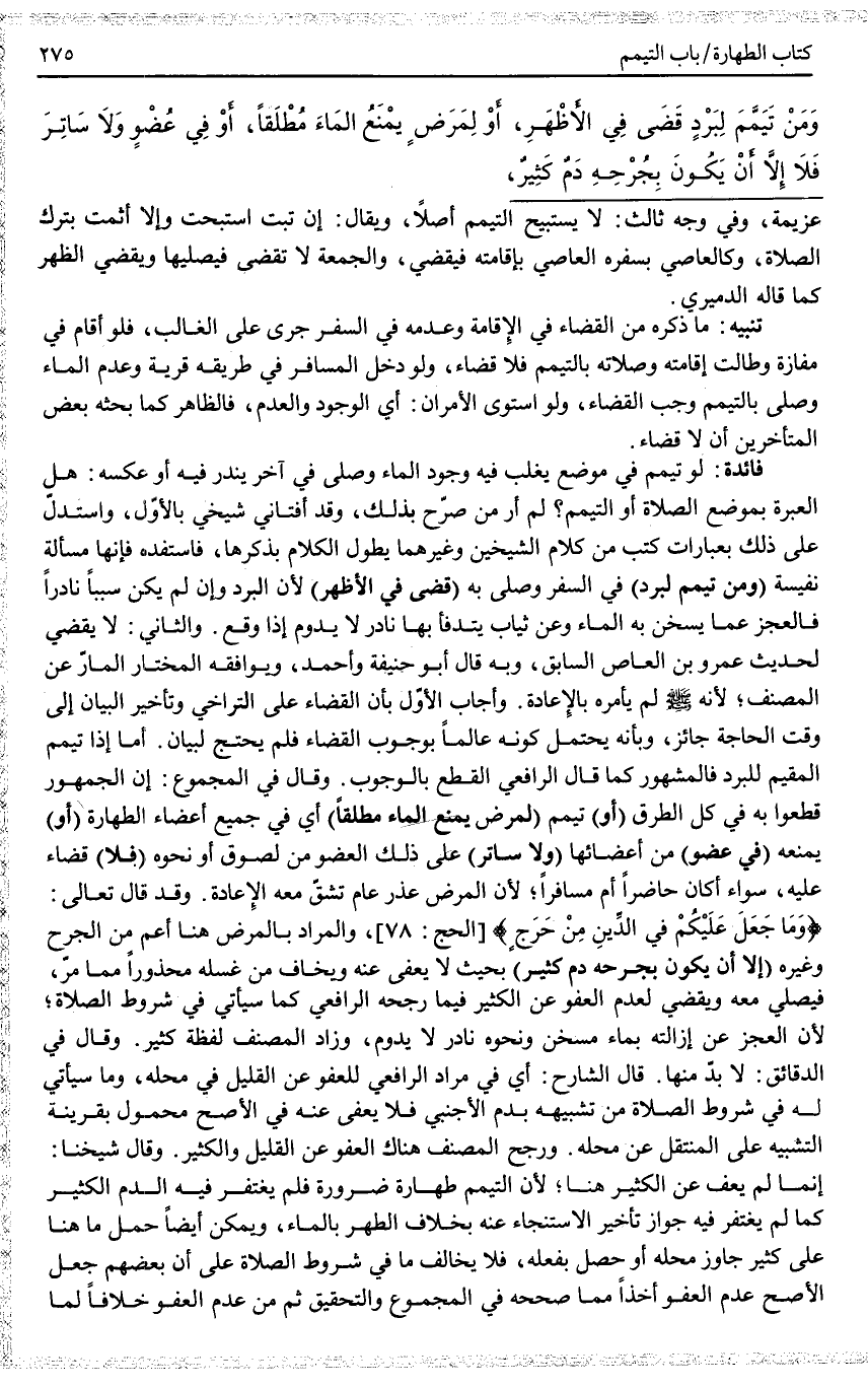 وَقَالَ فِي الدَّقَائِقِ: لَا بُدَّ مِنْهَا. قَالَ الشَّارِحُ: أَيْ فِي مُرَادِ الرَّافِعِيِّ لِلْعَفْوِ عَنْ الْقَلِيلِ فِي مَحَلِّهِ، وَمَا سَيَأْتِي لَهُ فِي شُرُوطِ الصَّلَاةِ مِنْ تَشْبِيهِهِ بِدَمِ الْأَجْنَبِيِّ فَلَا يُعْفَى عَنْهُ فِي الْأَصَحِّ مَحْمُولٌ بِقَرِينَةِ التَّشْبِيهِ عَلَى الْمُنْتَقِلِ عَنْ مَحِلِّهِ. وَرَجَّحَ الْمُصَنِّفُ هُنَاكَ الْعَفْوَ عَنْ الْقَلِيلِ وَالْكَثِيرِ.