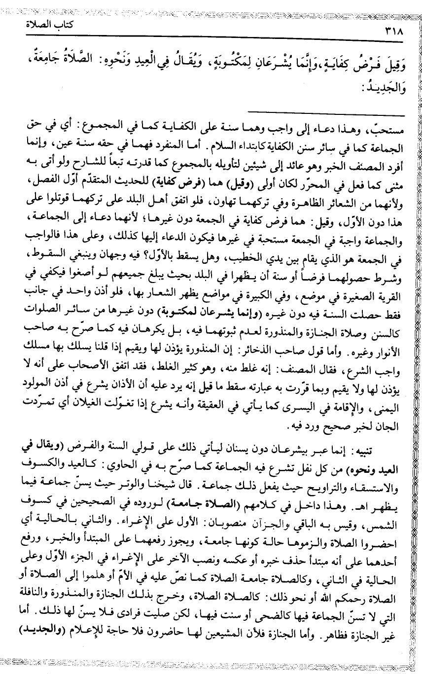 تَنْبِيهٌ: إنَّمَا عَبَّرَ بِيُشْرَعَانِ دُونَ يُسَنَّانِ لِيَأْتِيَ ذَلِكَ عَلَى قَوْلَيْ السُّنَّةِ وَالْفَرْضِ (وَيُقَالُ فِي الْعِيدِ وَنَحْوِهِ) مِنْ كُلِّ نَفْلٍ تُشْرَعُ فِيهِ الْجَمَاعَةُ كَمَا صَرَّحَ بِهِ فِي الْحَاوِي: كَالْعِيدِ وَالْكُسُوفِ وَالِاسْتِسْقَاءِ وَالتَّرَاوِيحِ حَيْثُ يَفْعَلُ ذَلِكَ جَمَاعَةٌ.