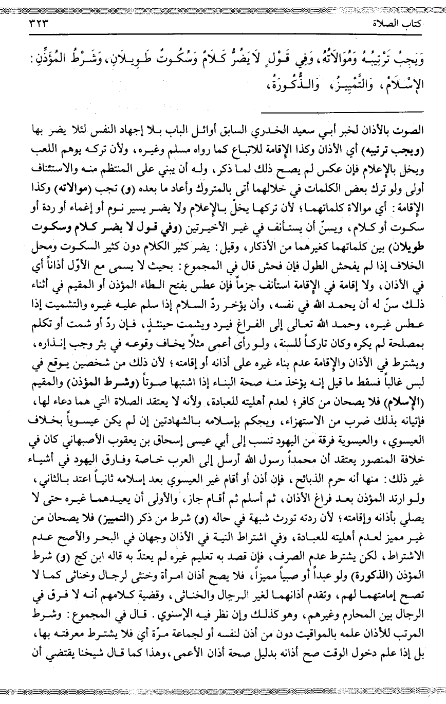 وَشَرْطُ الْمُؤَذِّنِ: الْإِسْلَامُ.