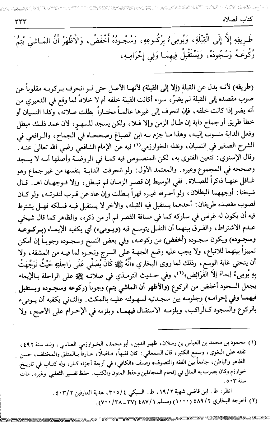 وَالْأَظْهَرُ أَنَّ الْمَاشِيَ يُتِمُّ رُكُوعَهُ وَسُجُودَهُ، وَيَسْتَقْبِلُ فِيهِمَا وَفِي إحْرَامِهِ،