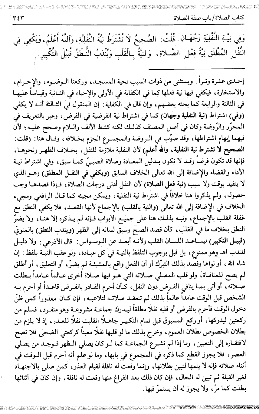 وَفِي نِيَّةِ النَّفْلِيَّةِ وَجْهَانِ. قُلْتُ: الصَّحِيحُ لَا تُشْتَرَطُ نِيَّةُ النَّفْلِيَّةِ، وَاَللَّهُ أَعْلَمُ.