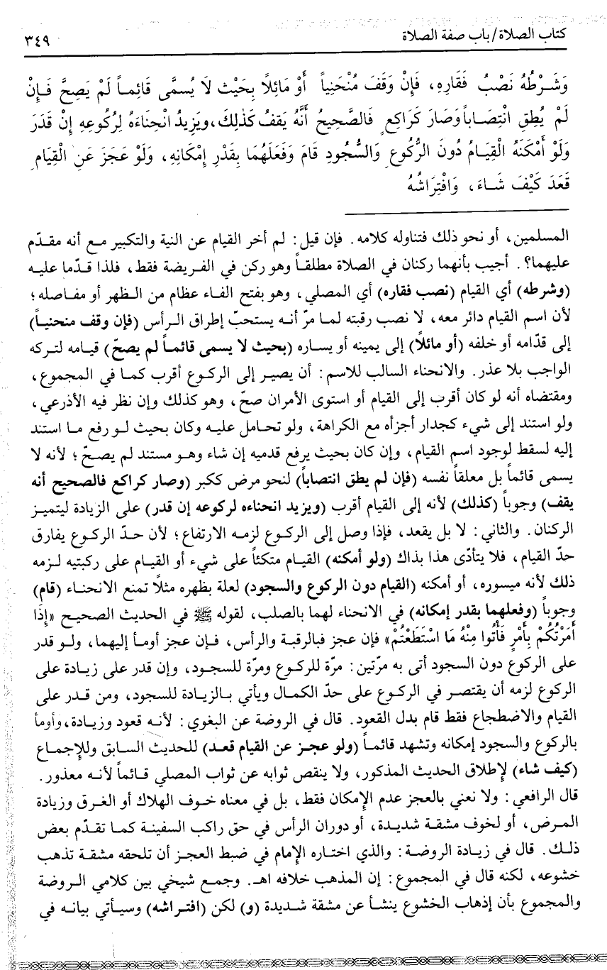 قَالَ فِي زِيَادَةِ الرَّوْضَةِ: وَاَلَّذِي اخْتَارَهُ الْإِمَامُ فِي ضَبْطِ الْعَجْزِ أَنْ تَلْحَقَهُ مَشَقَّةٌ تُذْهِبُ خُشُوعَهُ، لَكِنَّهُ قَالَ فِي الْمَجْمُوعِ: إنَّ الْمَذْهَبَ خِلَافُهُ اهـ.