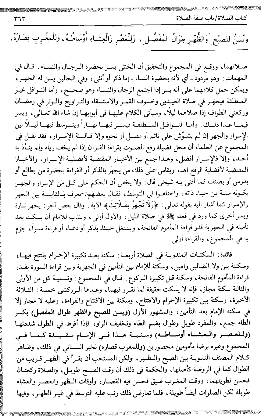 فَائِدَةٌ السَّكَتَاتُ الْمَنْدُوبَةُ فِي الصَّلَاةِ أَرْبَعَةٌ: سَكْتَةٌ بَعْدَ تَكْبِيرَةِ الْإِحْرَامِ يَفْتَتِحُ فِيهَا، وَسَكْتَةٌ بَيْنَ وَلَا الضَّالِّينَ وَآمِينَ، وَسَكْتَةٌ لِلْإِمَامِ بَيْنَ التَّأْمِينِ فِي الْجَهْرِيَّةِ وَبَيْنَ قِرَاءَةِ السُّورَةِ بِقَدْرِ قِرَاءَةِ الْمَأْمُومِ الْفَاتِحَةَ، وَسَكْتَةٌ قَبْلَ تَكْبِيرَةِ الرُّكُوعِ.