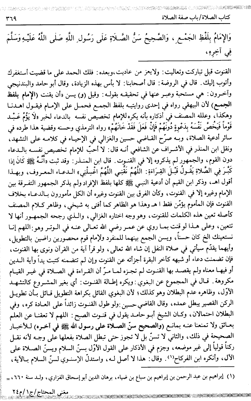 (وَ) يُسَنُّ أَنْ يَقْنُتَ (الْإِمَامُ بِلَفْظِ الْجَمْعِ) ؛ لِأَنَّ الْبَيْهَقِيَّ رَوَاهُ فِي إحْدَى رِوَايَتَيْهِ بِلَفْظِ الْجَمْعِ فَحَمَلَ عَلَى الْإِمَامِ فَيَقُولُ اهْدِنَا وَهَكَذَا، وَعَلَّلَهُ الْمُصَنِّفُ فِي أَذْكَارِهِ بِأَنَّهُ يُكْرَهُ لِلْإِمَامِ تَخْصِيصُ نَفْسِهِ بِالدُّعَاءِ لِخَبَرِ «لَا يَؤُمُّ عَبْدٌ قَوْمًا فَيَخُصُّ نَفْسَهُ بِدَعْوَةٍ دُونَهُمْ فَإِنْ فَعَلَ فَقَدْ خَانَهُمْ» رَوَاهُ التِّرْمِذِيُّ وَحَسَّنَهُ وَقَضِيَّةُ هَذَا طَرْدُهُ فِي سَائِرِ أَدْعِيَةِ الصَّلَاةِ، وَبِهِ صَرَّحَ الْقَاضِي حُسَيْنٌ وَالْغَزَالِيُّ فِي الْإِحْيَاءِ فِي كَلَامِهِ عَلَى التَّشَهُّدِ، وَنَقَلَ ابْنُ الْمُنْذِرِ فِي الْإِشْرَافِ عَنْ الشَّافِعِيِّ أَنَّهُ قَالَ: لَا أُحِبُّ لِلْإِمَامِ تَخْصِيصَ نَفْسِهِ بِالدُّعَاءِ دُونَ الْقَوْمِ، وَالْجُمْهُورُ لَمْ يَذْكُرُوهُ إلَّا فِي الْقُنُوتِ.
