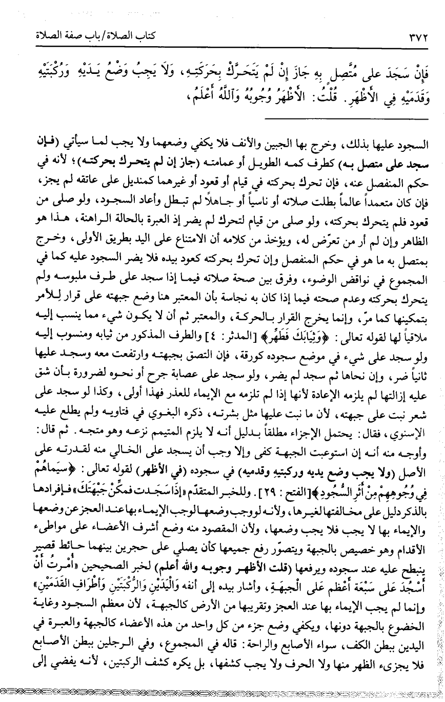ـــــــــــــــــــــــــــــQالسُّجُودِ عَلَيْهَا بِذَلِكَ، وَخَرَجَ بِهَا الْجَبِينُ وَالْأَنْفُ فَلَا يَكْفِي وَضْعُهُمَا وَلَا يَجِبُ لِمَا سَيَأْتِي.