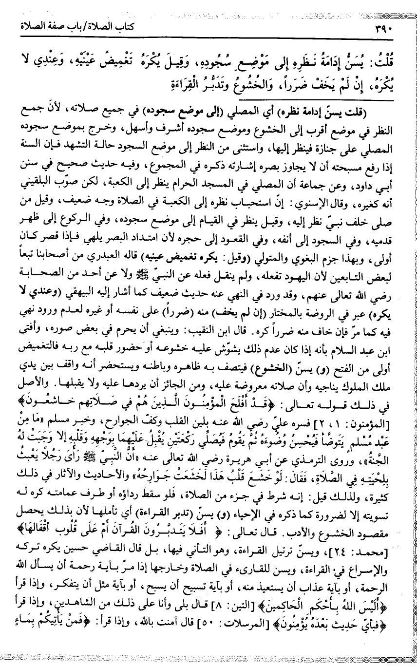 قَالَ ابْنُ النَّقِيبِ:، وَيَنْبَغِي أَنْ يَحْرُمَ فِي بَعْضِ صُوَرِهِ، وَأَفْتَى ابْنُ عَبْدِ السَّلَامِ بِأَنَّهُ إذَا كَانَ عَدَمُ ذَلِكَ يُشَوِّشُ عَلَيْهِ خُشُوعَهُ أَوْ حُضُورَ قَلْبِهِ مَعَ رَبِّهِ فَالتَّغْمِيضُ أَوْلَى مِنْ الْفَتْحِ.