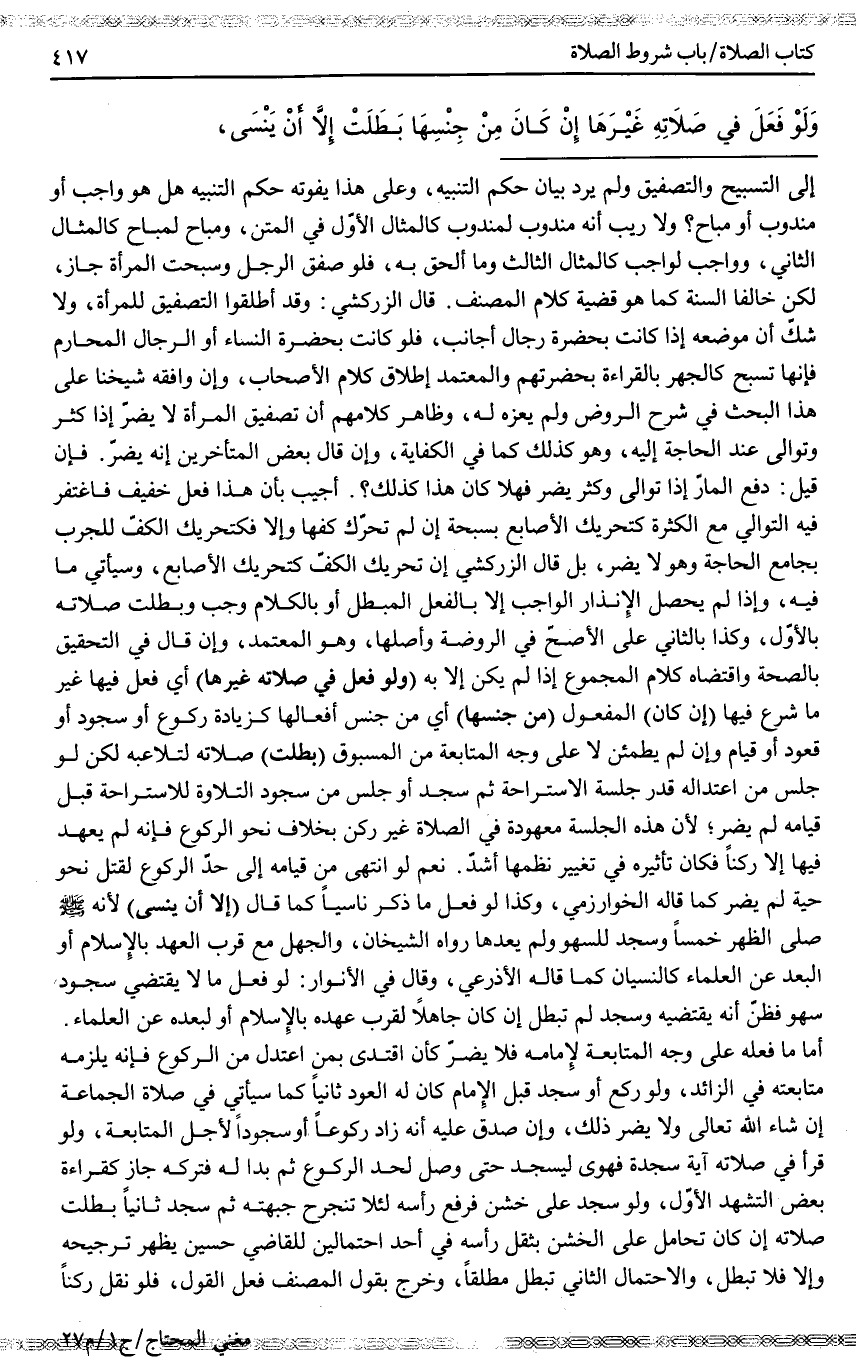 أُجِيبَ بِأَنَّ هَذَا فِعْلٌ خَفِيفٌ فَاغْتُفِرَ فِيهِ التَّوَالِي مَعَ الْكَثْرَةِ كَتَحْرِيكِ الْأَصَابِعِ بِسُبْحَةٍ إنْ لَمْ تُحَرِّكْ كَفَّهَا، وَإِلَّا فَكَتَحْرِيكِ الْكَفِّ لِلْجَرَبِ بِجَامِعِ الْحَاجَةِ، وَهُوَ لَا يَضُرُّ، بَلْ قَالَ الزَّرْكَشِيُّ إنَّ تَحْرِيكَ الْكَفِّ كَتَحْرِيكِ الْأَصَابِعِ، وَسَيَأْتِي مَا فِيهِ، وَإِذَا لَمْ يَحْصُلْ الْإِنْذَارُ الْوَاجِبُ إلَّا بِالْفِعْلِ الْمُبْطِلِ أَوْ بِالْكَلَامِ وَجَبَ وَبَطَلَتْ صَلَاتُهُ بِالْأَوَّلِ، وَكَذَا بِالثَّانِي عَلَى الْأَصَحِّ فِي الرَّوْضَةِ وَأَصْلُهَا، وَهُوَ الْمُعْتَمَدُ، وَإِنْ قَالَ فِي التَّحْقِيقِ بِالصِّحَّةِ وَاقْتَضَاهُ كَلَامُ الْمَجْمُوعِ إذَا لَمْ يَكُنْ إلَّا بِهِ.