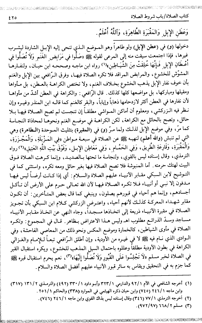 وَعَطَنِ الْإِبِلِ وَالْمَقْبَرَةِ الطَّاهِرَةِ، وَاَللَّهُ أَعْلَمُ.