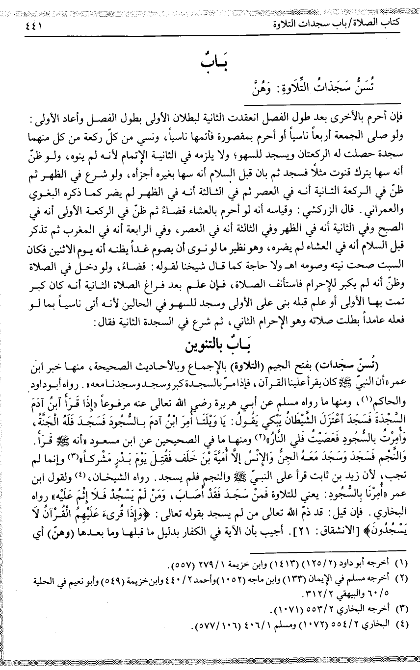 بَابٌ تُسَنُّ سَجَدَاتُ التِّلَاوَةِ: وَهُنَّ