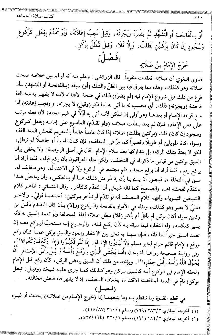 فَصْلٌ خَرَجَ الْإِمَامُ مِنْ صَلَاتِهِ