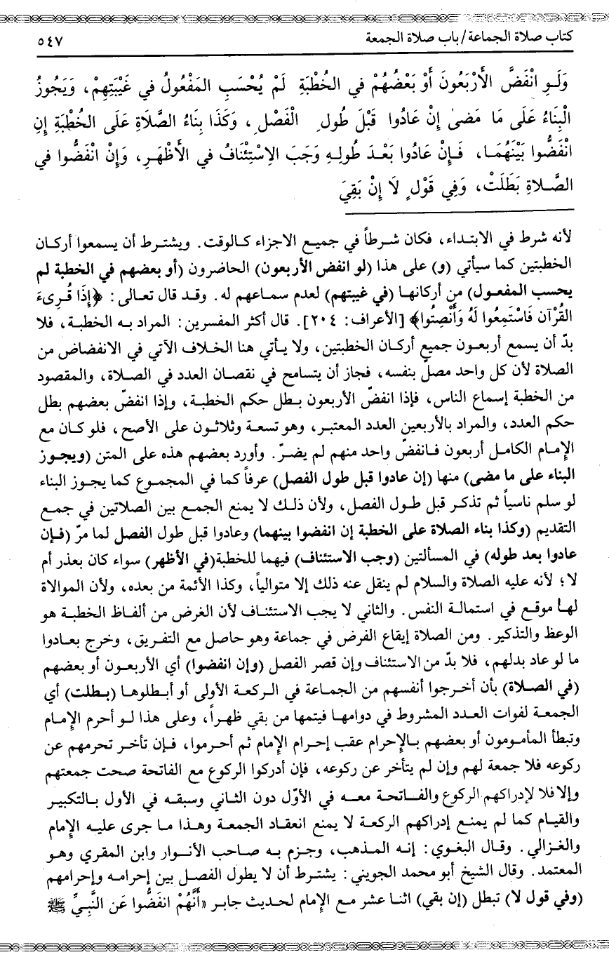 وَلَوْ انْفَضَّ الْأَرْبَعُونَ أَوْ بَعْضُهُمْ فِي الْخُطْبَةِ لَمْ يُحْسَبْ الْمَفْعُولُ فِي غَيْبَتِهِمْ، وَيَجُوزُ الْبِنَاءُ عَلَى مَا مَضَى إنْ عَادُوا قَبْلَ طُولِ الْفَصْلِ، وَكَذَا بِنَاءُ الصَّلَاةِ عَلَى الْخُطْبَةِ إنْ انْفَضُّوا بَيْنَهُمَا، فَإِنْ عَادُوا بَعْدَ طُولِهِ وَجَبَ الِاسْتِئْنَافُ فِي الْأَظْهَرِ.